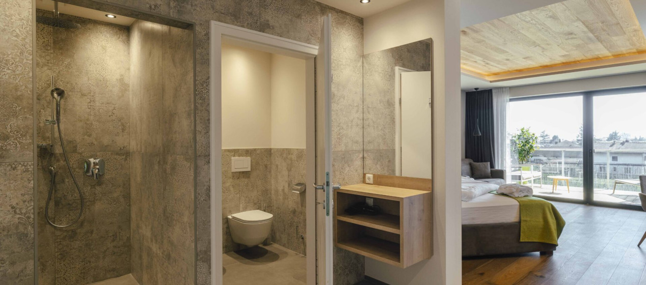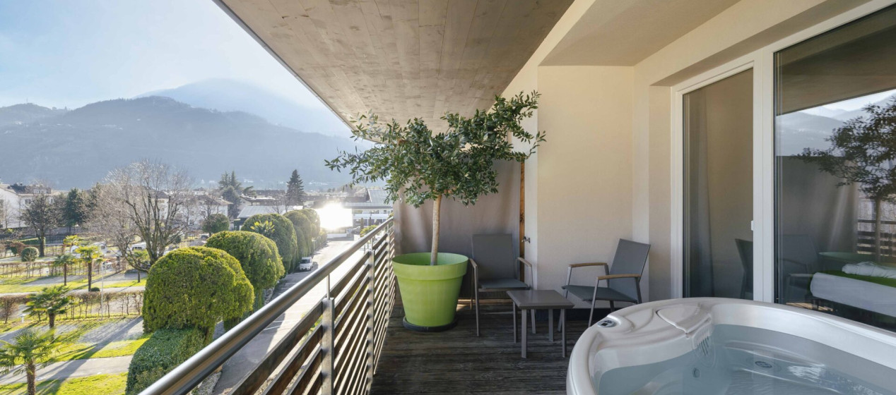 Prickelnd und stilvoll: Lichtdurchflutete Suite mit abgetrenntem Wohnraum, gemütlichem Schlafzimmer und Südbalkon. Besonderes Highlight der Suite ist der Hotspring-Whirlpool auf dem eigenem Panoramabalkon. Natürlich mit elegantem Badezimmer, Regendusche, Föhn und Bidet. Weiters ausgestattet mit Kühlschrank, Espressomaschine, Tee-Set, 2 TV, Safe, Föhn, WLAN und Klimaanlage.