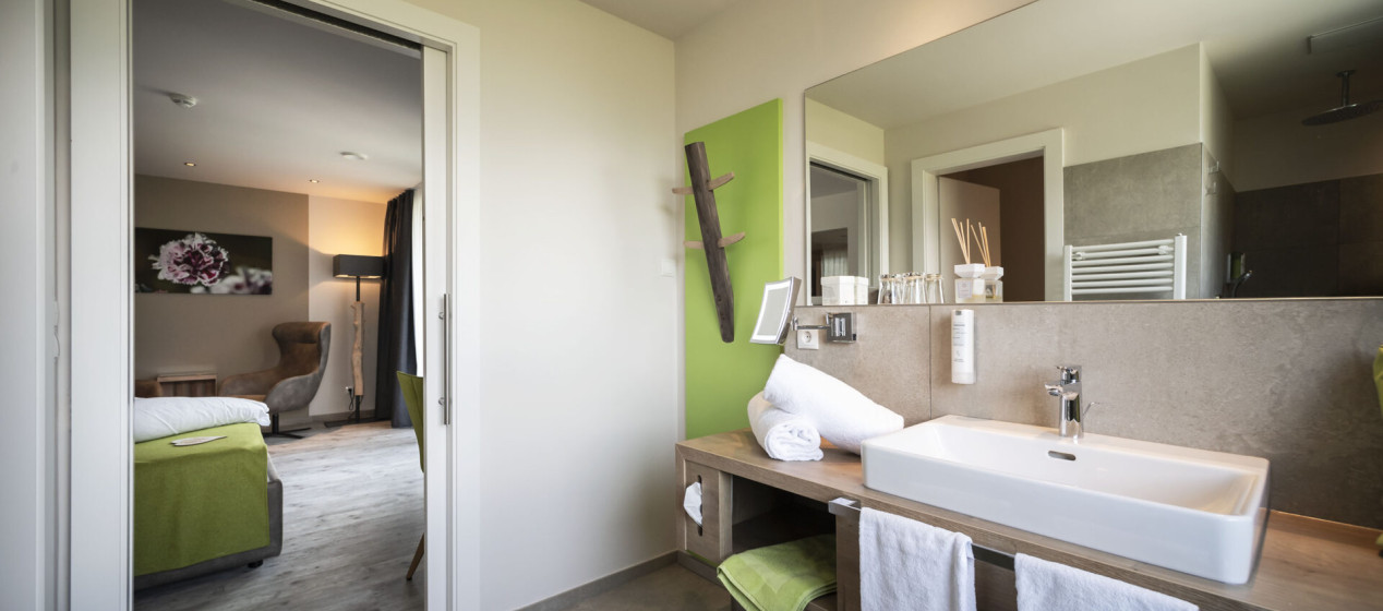 Modern und luxuriös: Zimmer mit Doppelbett und gemütlichem Sofa zum Entspannen, Panorama-Loungeecke auf dem großzügigen Südbalkon mit privatem Whirlpool, modernem Badezimmer samt Regendusche und separatem WC und Bidet (teils barrierefrei erhältlich), ausgestattet mit Klimaanlage, Kühlschrank, Tee-Set, Espressomaschine, TV, Safe, Föhn und WLAN.