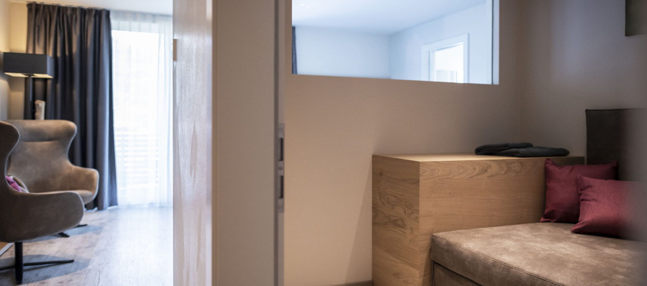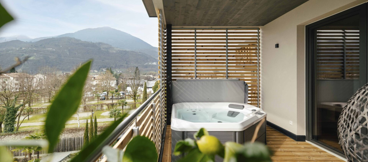 Gönnen Sie sich was ganz Besonderes: Luxussuite mit eigenem Hotspring-Whirlpool und privater Sauna auf dem sonnenverwöhnten Südbalkon mit Blick ins wunderschöne Meraner Land. Bestehend aus einem großzügigen und lichtdurchfluteten Wohn-Schlafbereich mit abgetrennter Kuschelnische im Pfeiss-Style. Samt luxuriösem Badezimmer mit Erlebnisdusche, Schminktisch, natürlich mit Bidet und separatem WC. Weiters ausgestattet mit Kühlschrank, Teeset, Espressomaschine, 2 TV, Safe, Föhn, WLAN und Klimaanlage.