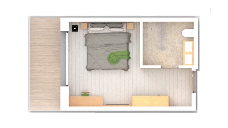 Komfortabel und modern: Doppelzimmer – auch barrierefrei verfügbar – mit Sitzecke und Schreibtisch, Balkon mit wunderbarer Aussicht auf Lana und das Vigiljoch; WLAN, TV, Safe, Kühlschrank, Klimaanlage und Badezimmer mit Regendusche und Föhn.