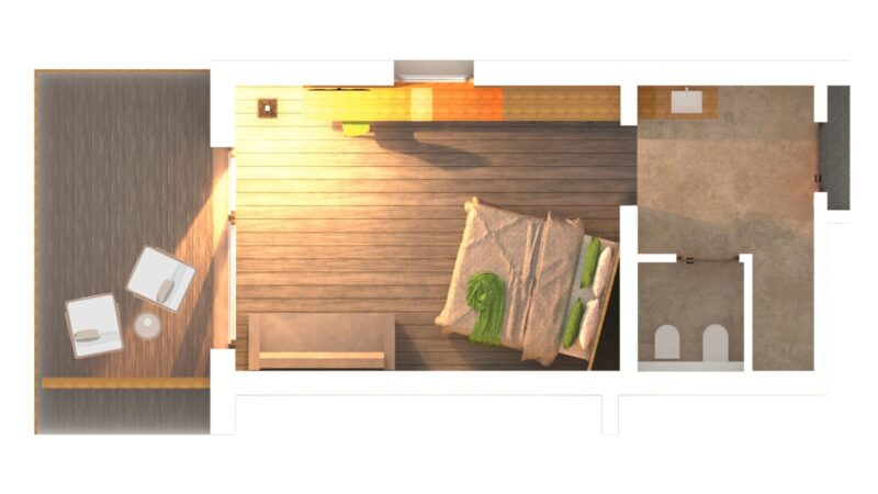Sonnig und geräumig: Zimmer mit Doppelbett und gemütlichem Sofa zum Entspannen, Panorama-Loungeecke auf dem großzügigen Südbalkon, modernem Badezimmer samt Regendusche und separatem WC und Bidet (teils barrierefrei erhältlich), ausgestattet mit Klimaanlage, Kühlschrank, Tee-Set, Espressomaschine, TV, Safe, Föhn und WLAN.